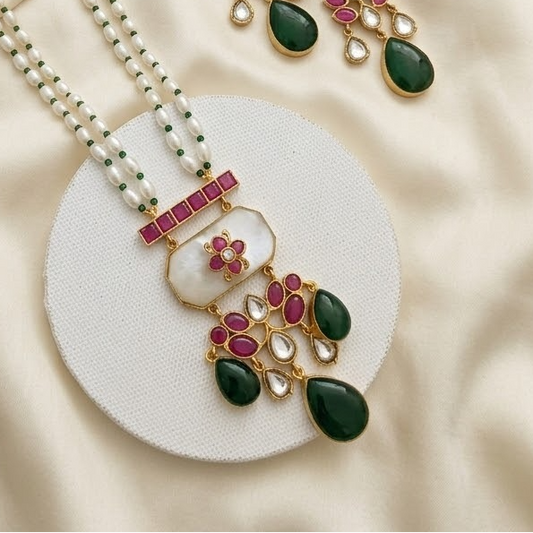 2 Layer pearl with Jadau kundan Fusion pendant necklace