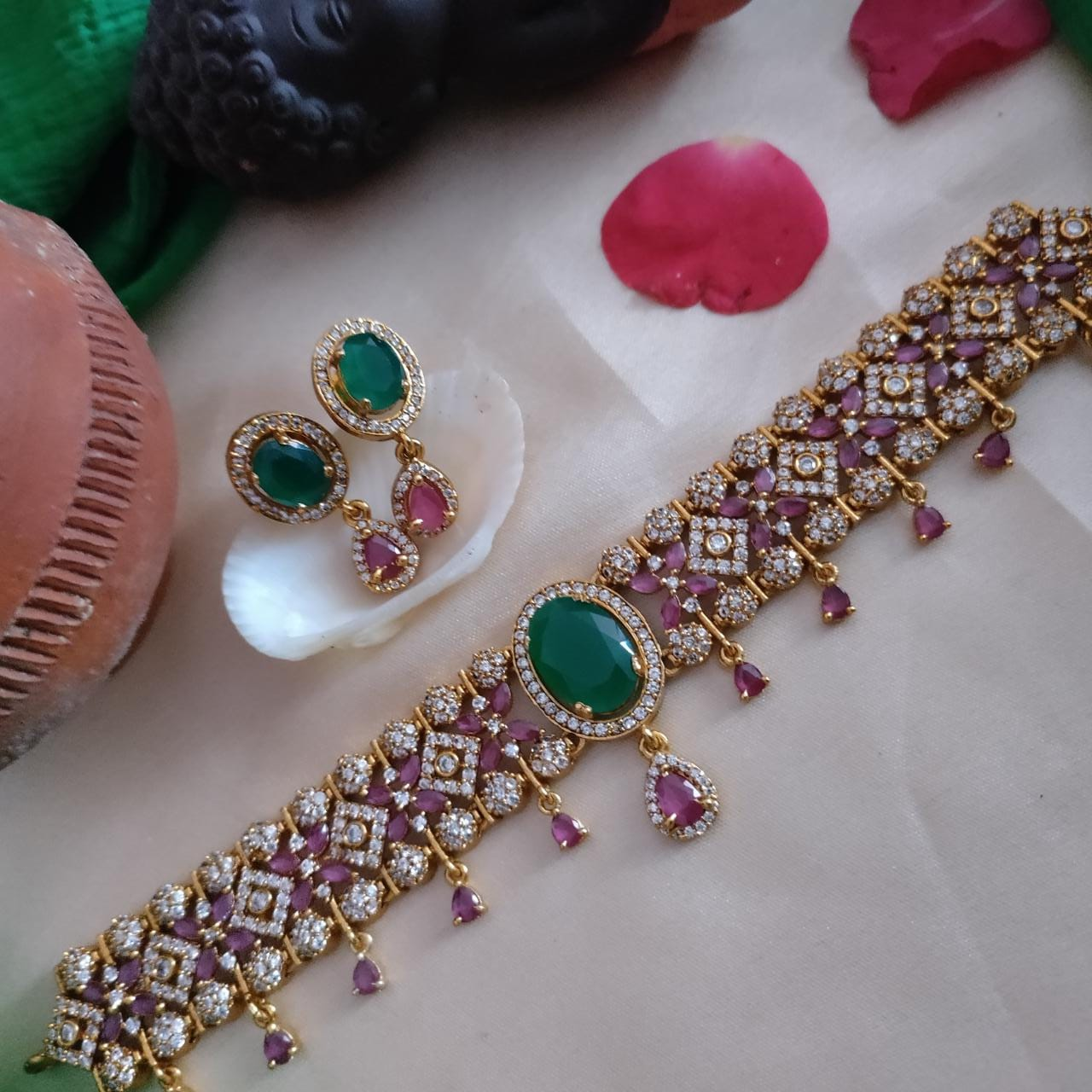 Material used – Brass/Copper and gold polished, cz stone.