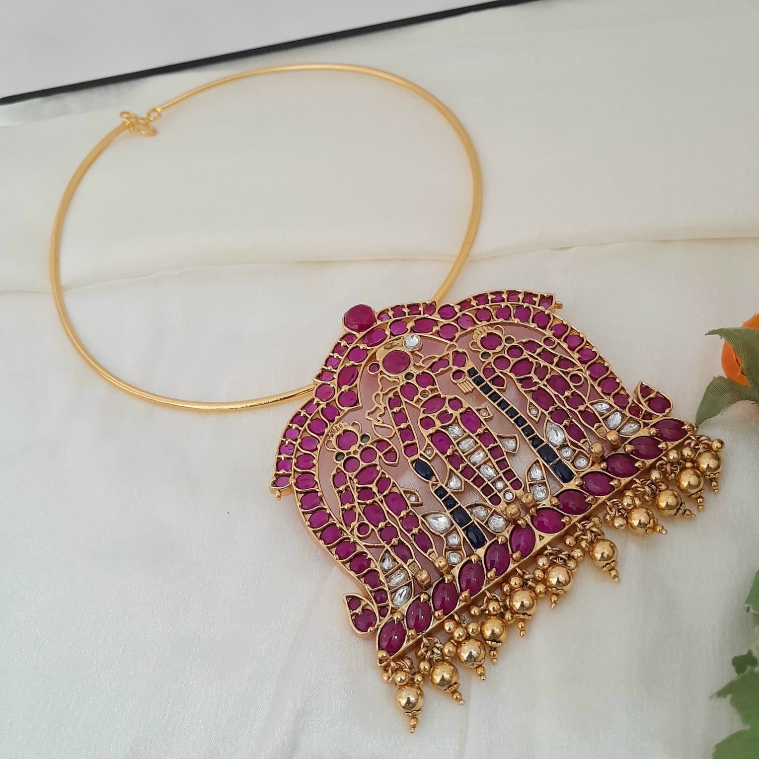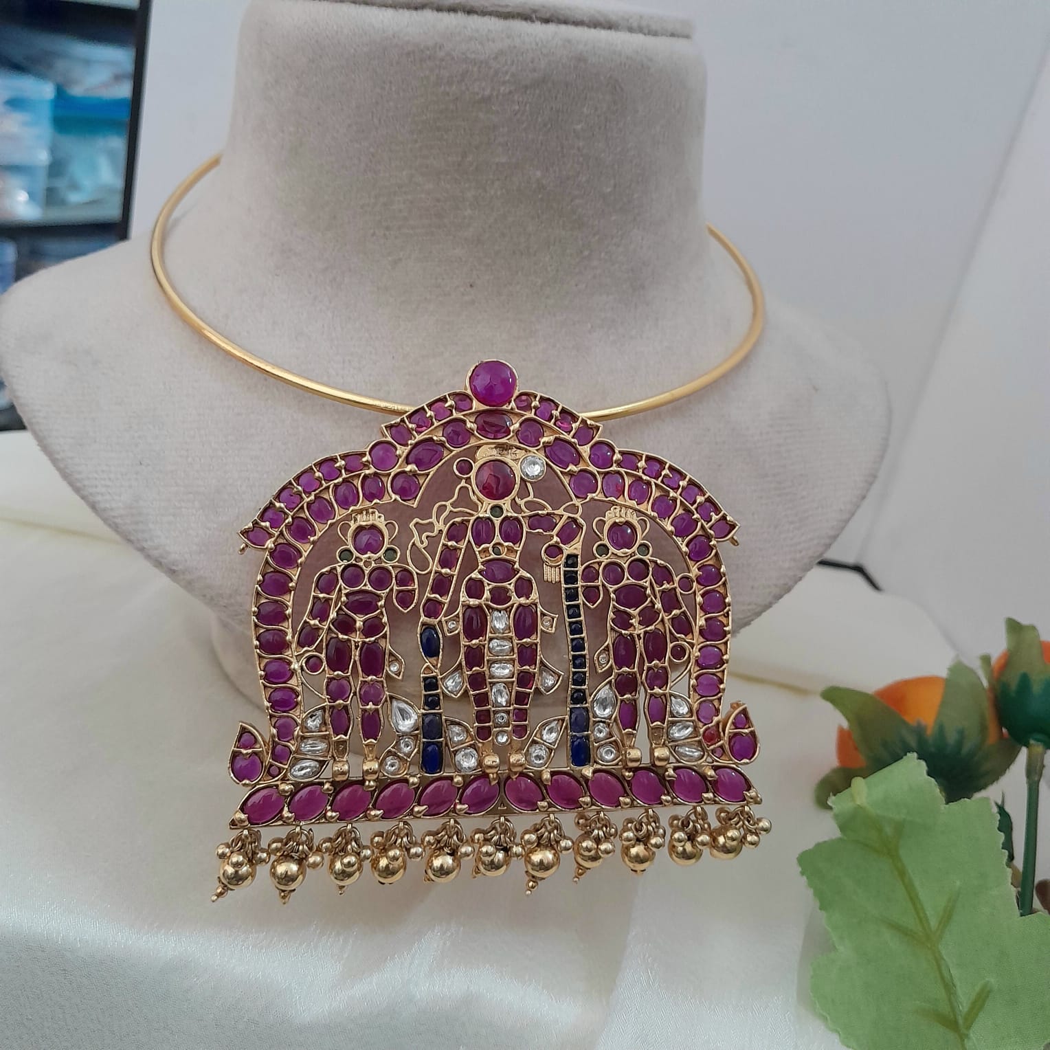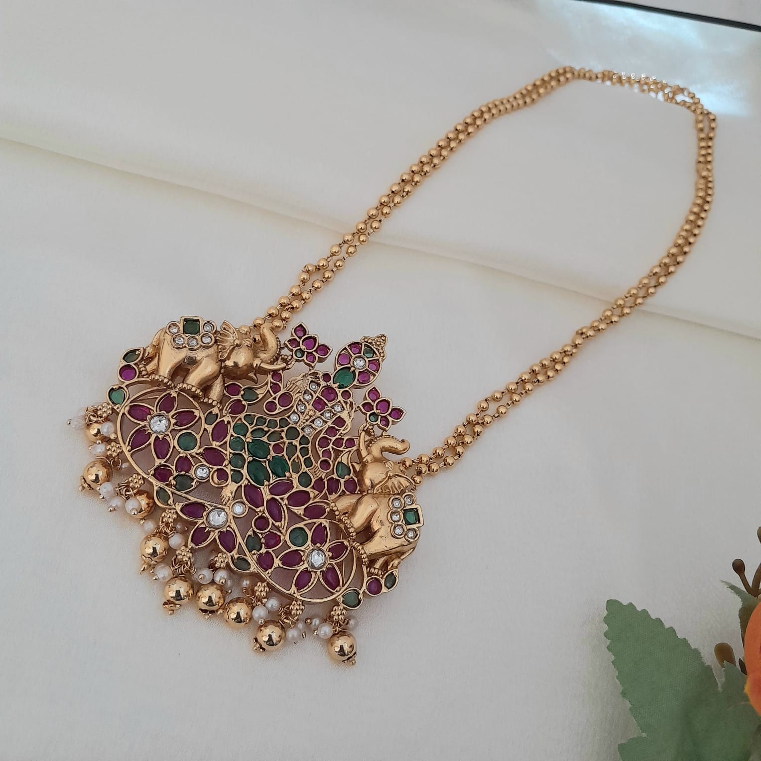 The Deity pendant, depicting a revered figure or symbol associated with divinity, adds a sacred and cultural dimension to the set. Paired with a chain, the mid length necklace enhances the overall elegance and creates a cohesive look.