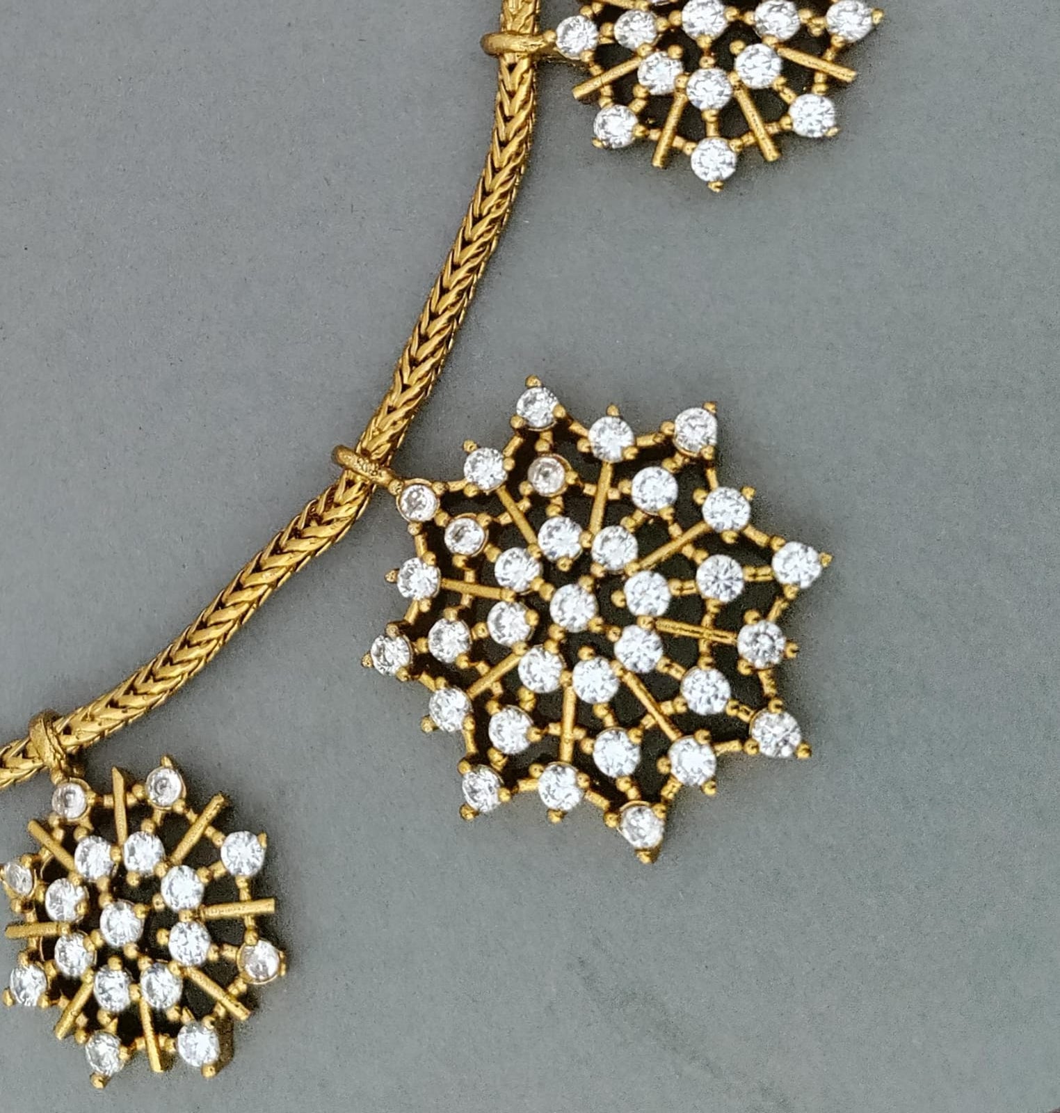 Material used – Brass/Copper and gold polished, cz stone.