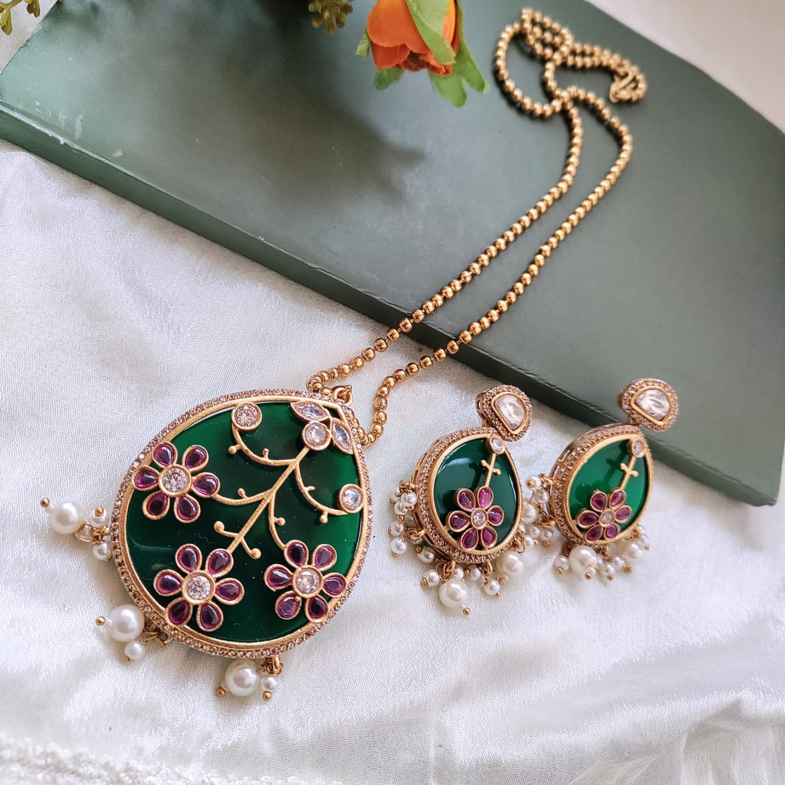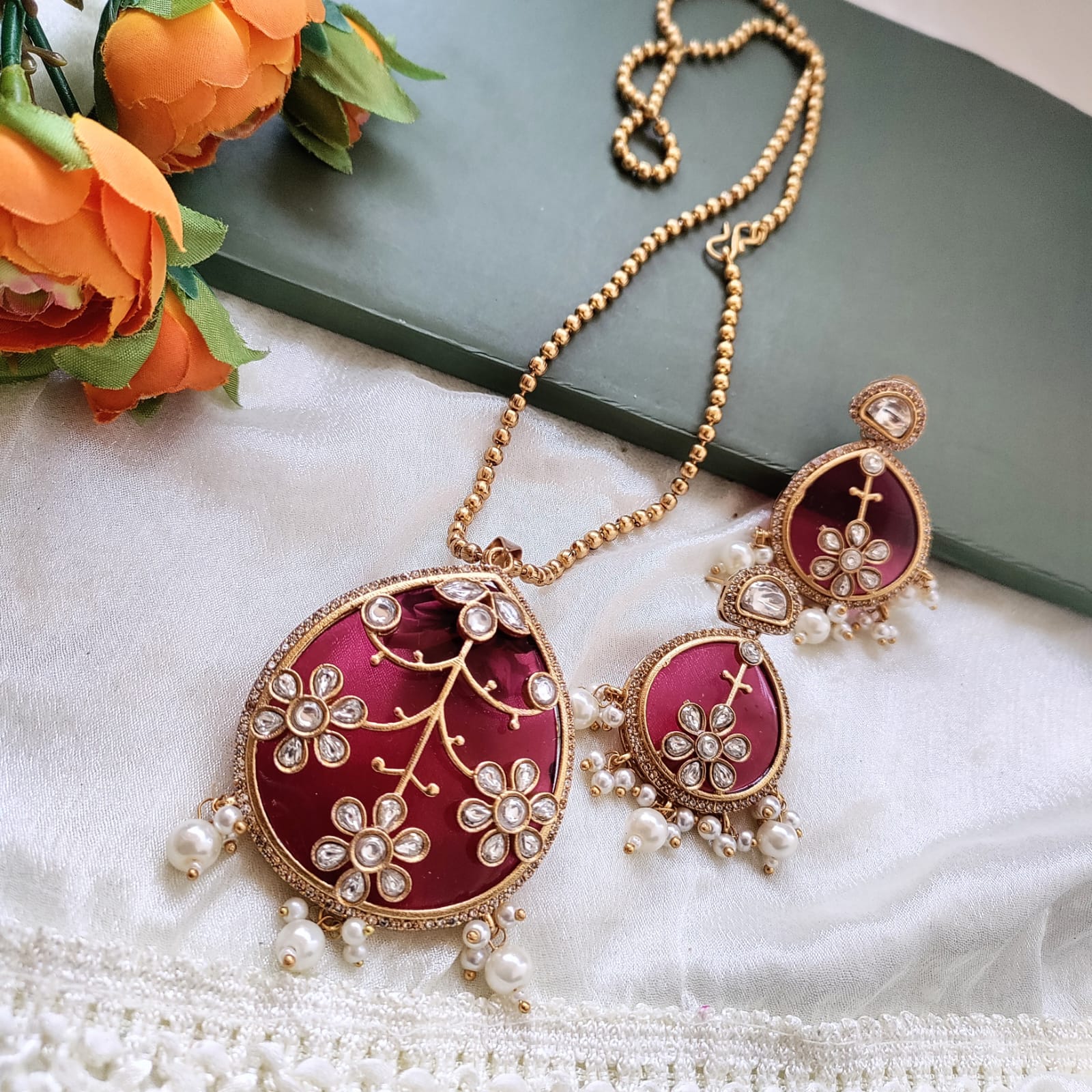 Drop shaped Exclusive Kundan work pendant chain