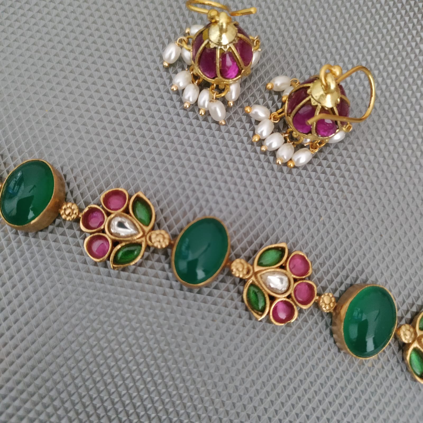 Material used - Brass, Stone - Premium quality Semiprecious stones , Jadau kundan , Polish - Gold Polished