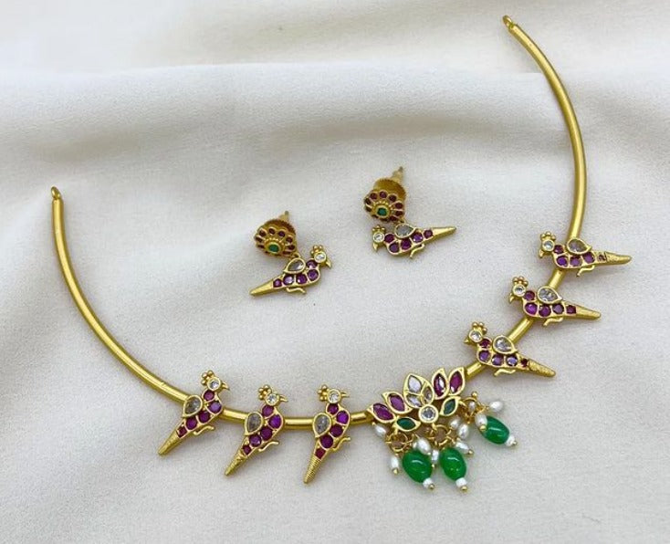 The Hasuli, a choker-style necklace, features a simple and sleek design adorned with a subtle bird motif.