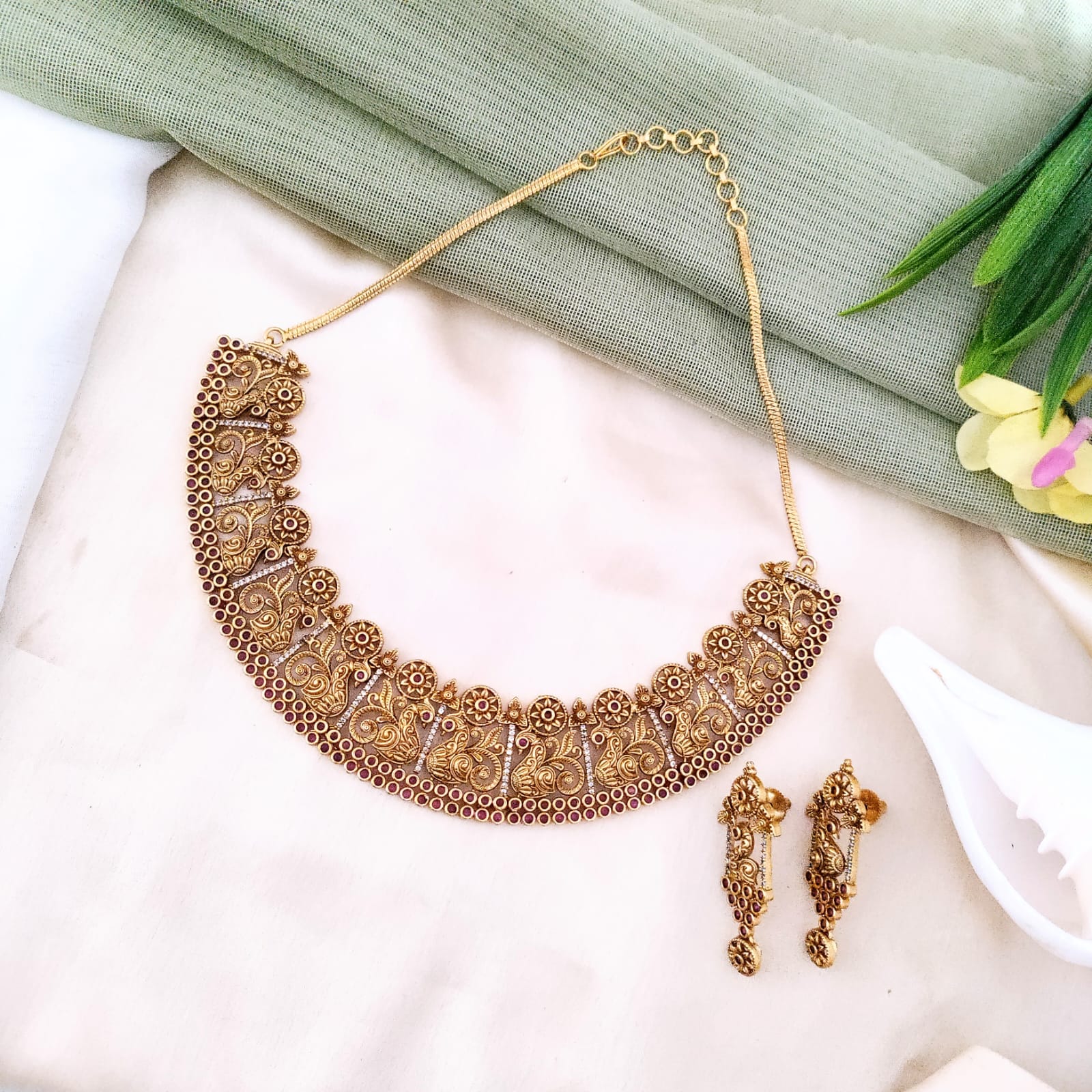 The intricate designs enhance its overall appearance. Look glamorous with our gold-polished necklace on any occasion.