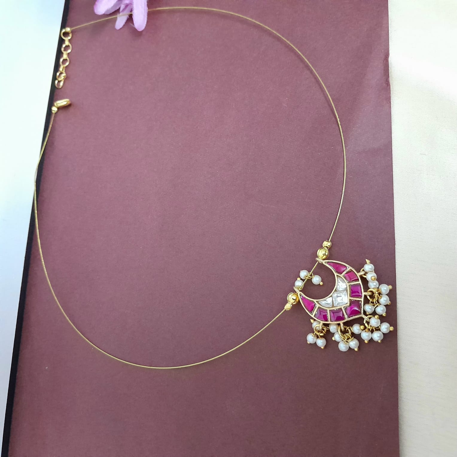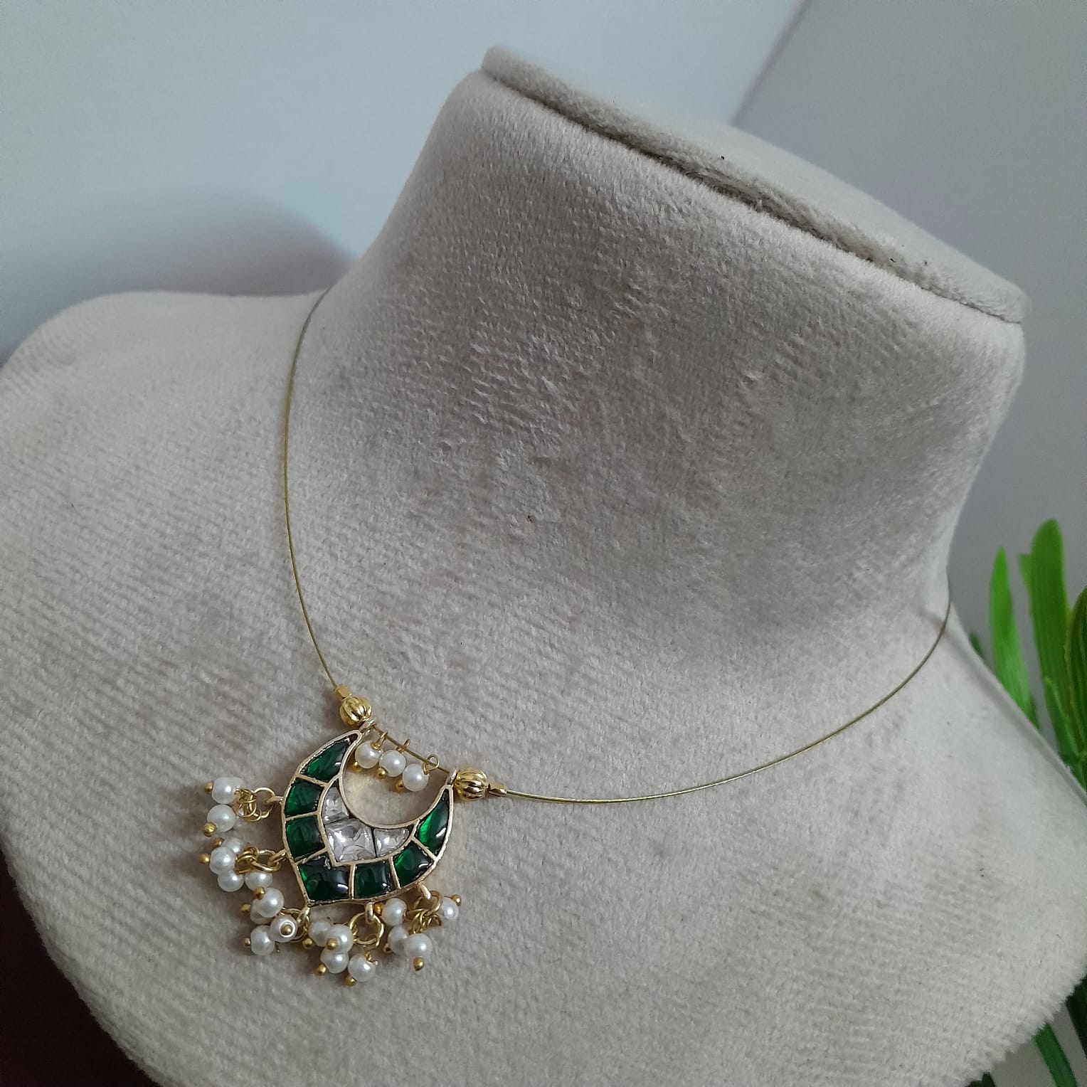 Made in brass, jadau kundan pendant with semiprecious stone necklace set.