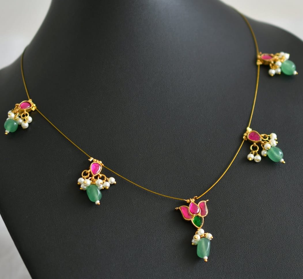 Made in brass, jadau kundan pendant with semiprecious stone necklace set.