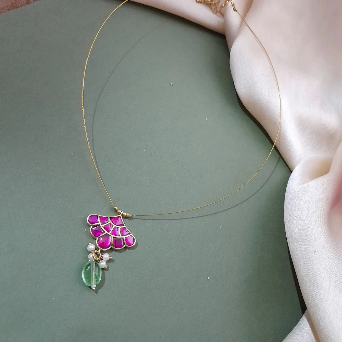 Made in brass, jadau kundan pendant with semiprecious stone necklace set.