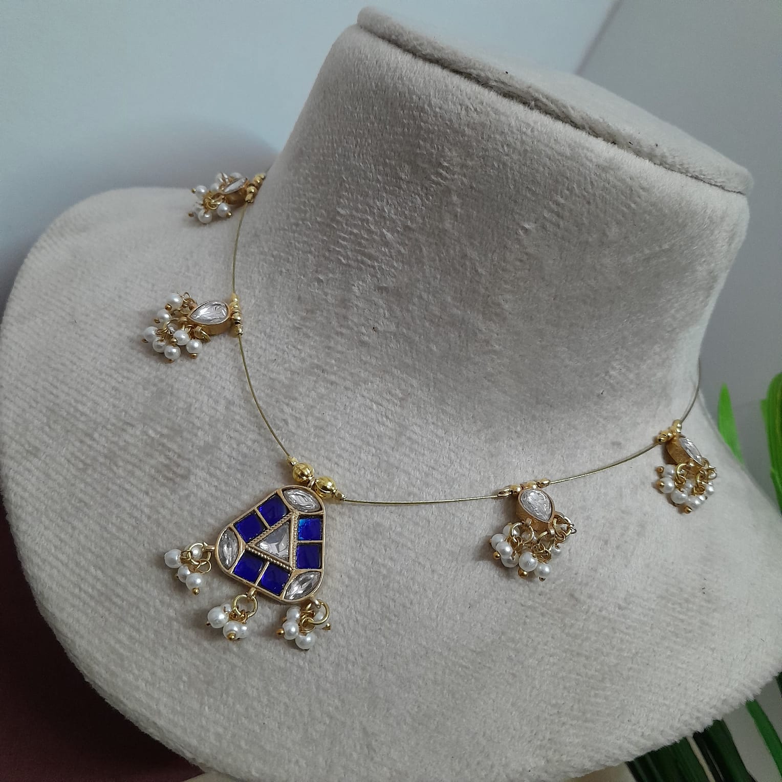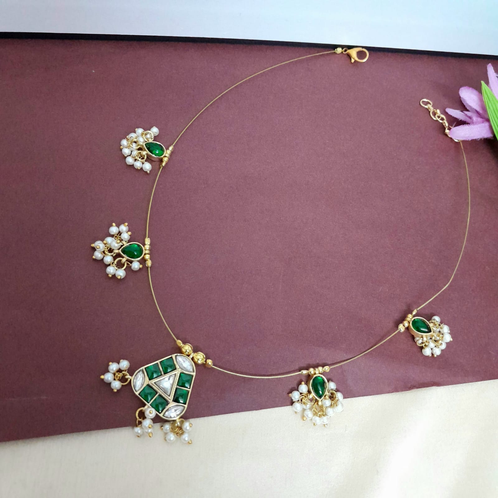 Made in brass, jadau kundan pendant with semiprecious stone necklace set.