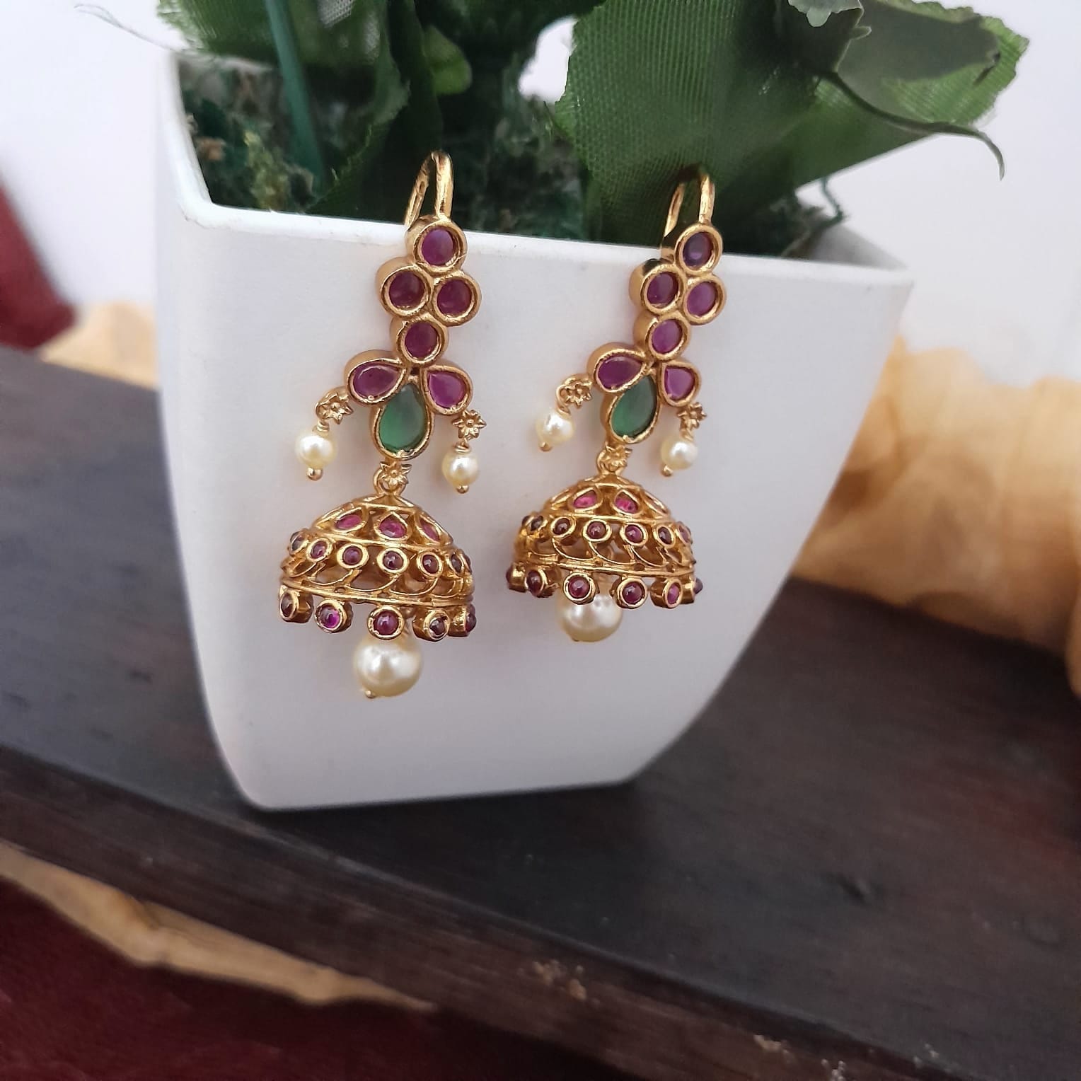 Hook type kemp stone jumkha earring