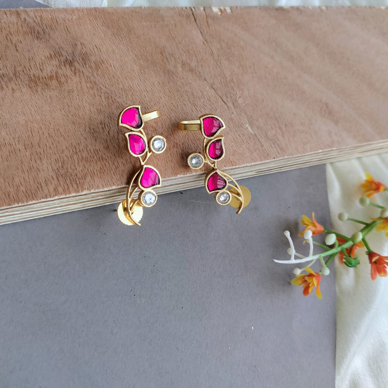 Add a regal charm to your look with this exquisite leaf Design Needle Bugadi, crafted in traditionalJadau Kundan style. Inspired by heritage aesthetics and intricate detailing, this piece beautifully blends craftsmanship with cultural elegance.