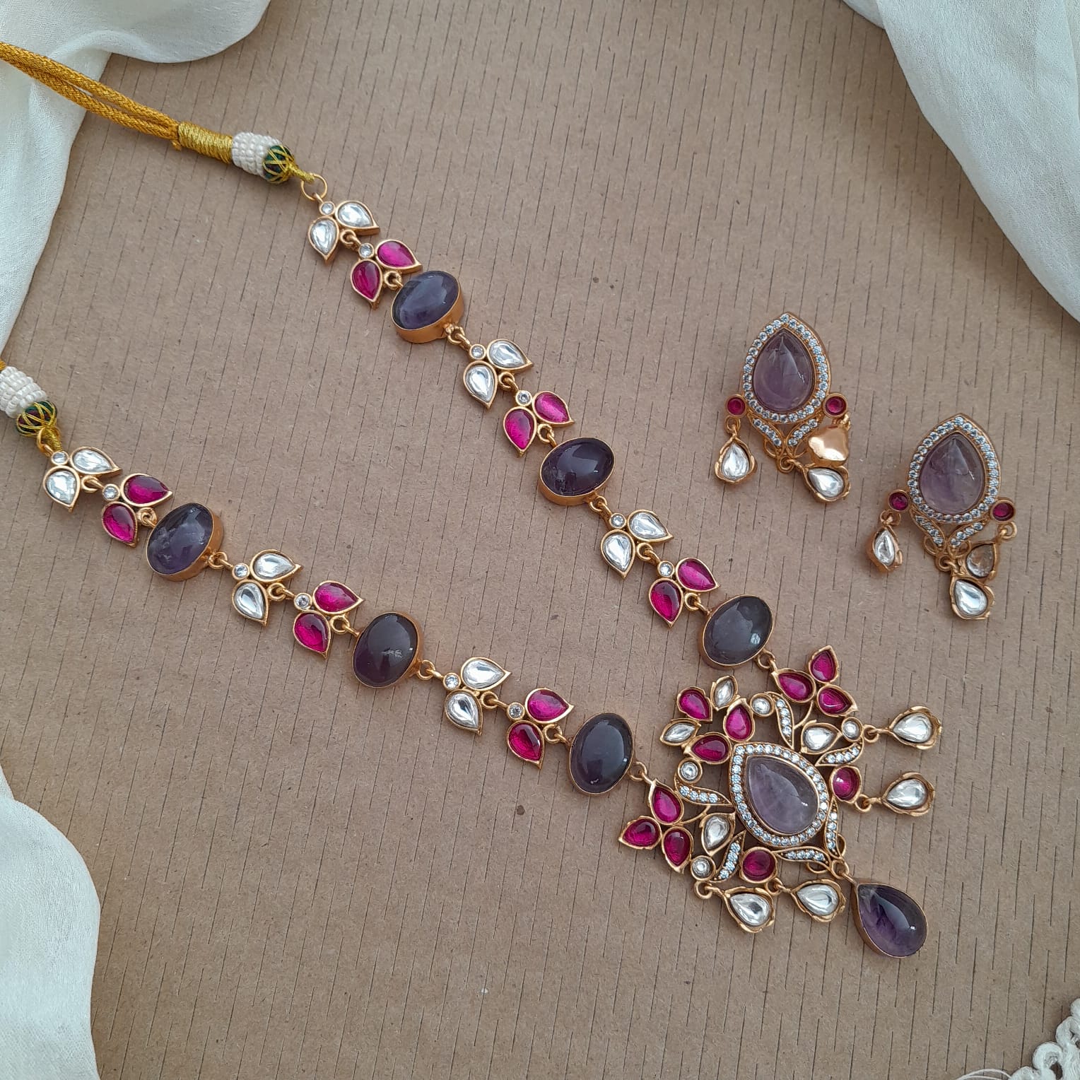 Material used - Brass, Stone - Premium quality Semiprecious stones , Jadau kundan , Polish- Gold polished