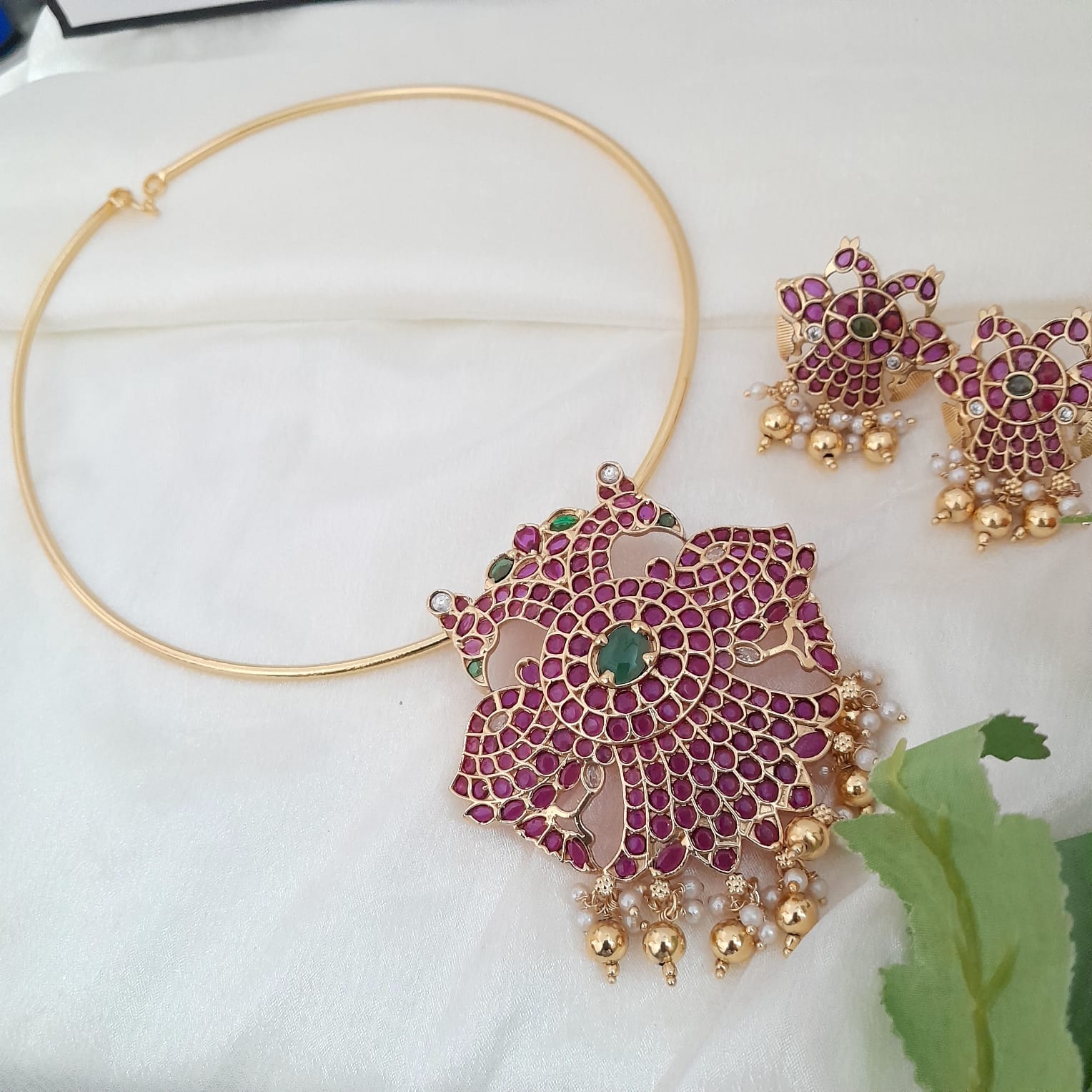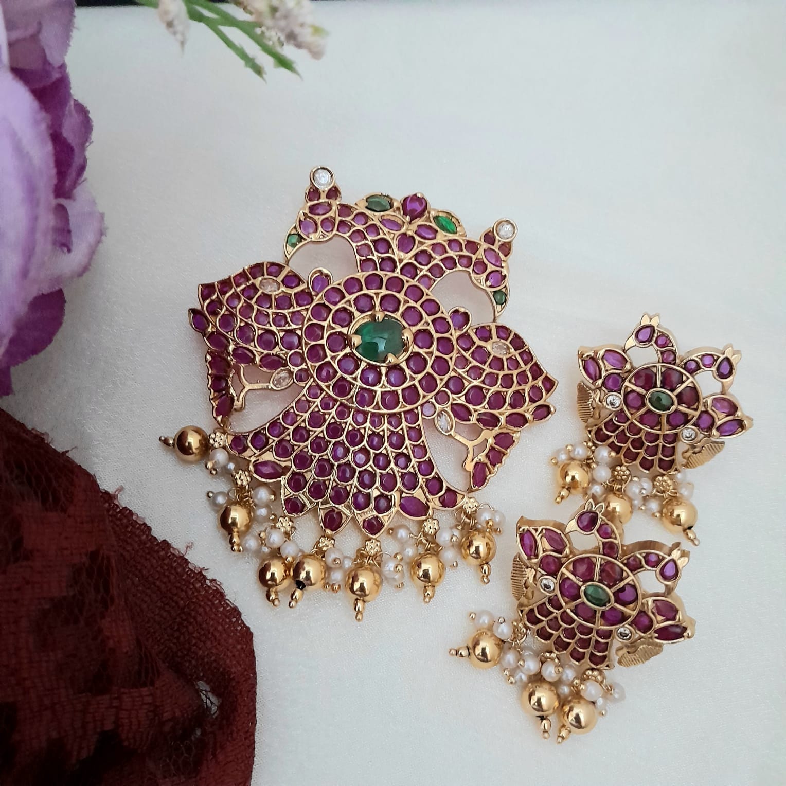 The Deity pendant, depicting a revered figure or symbol associated with divinity, adds a sacred and cultural dimension to the set. Paired with a chain, the mid length necklace enhances the overall elegance and creates a cohesive look.