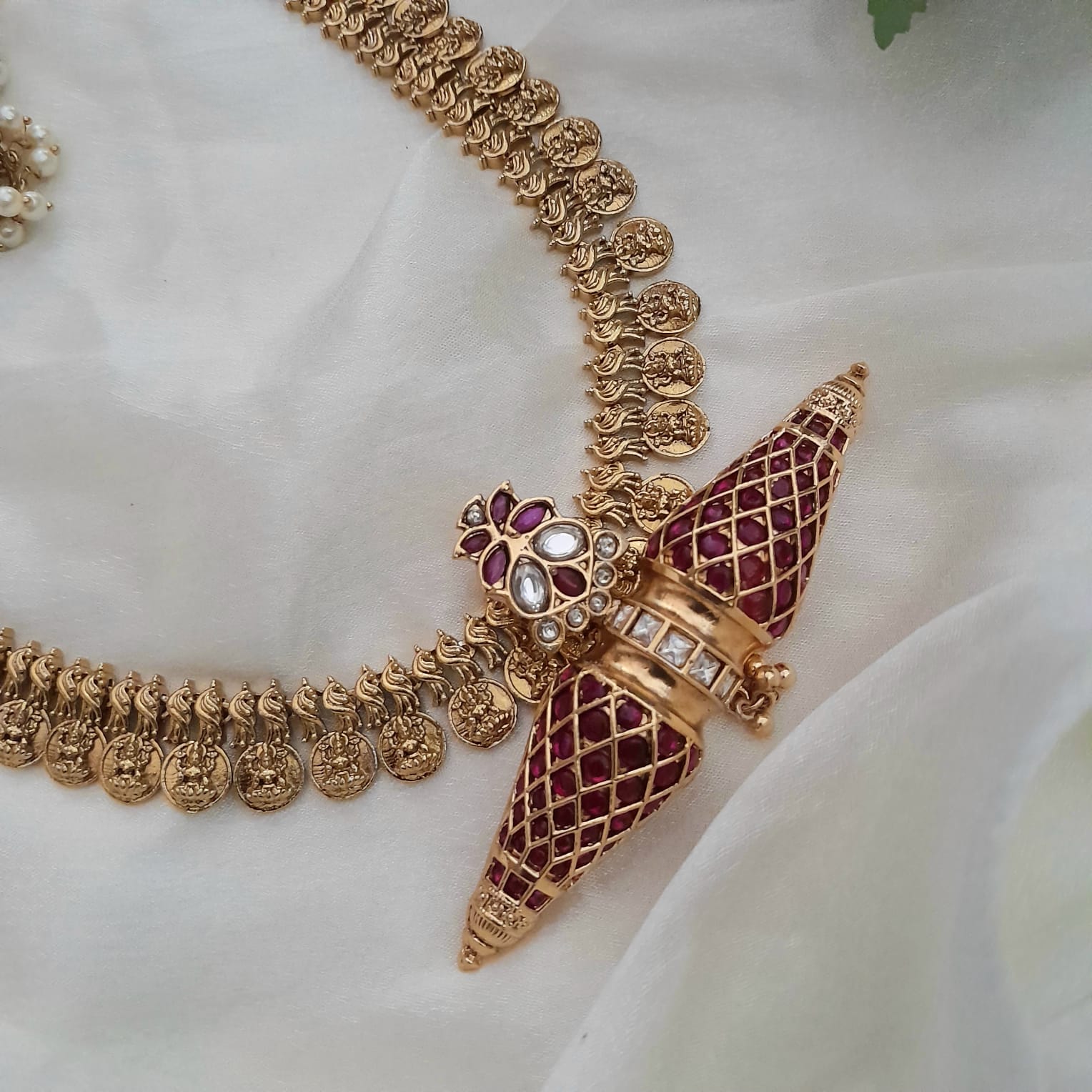 Crafted with care, a luxurious extended necklace showcasing kemp beads elegantly strung together. Complemented with a set of matching earrings.