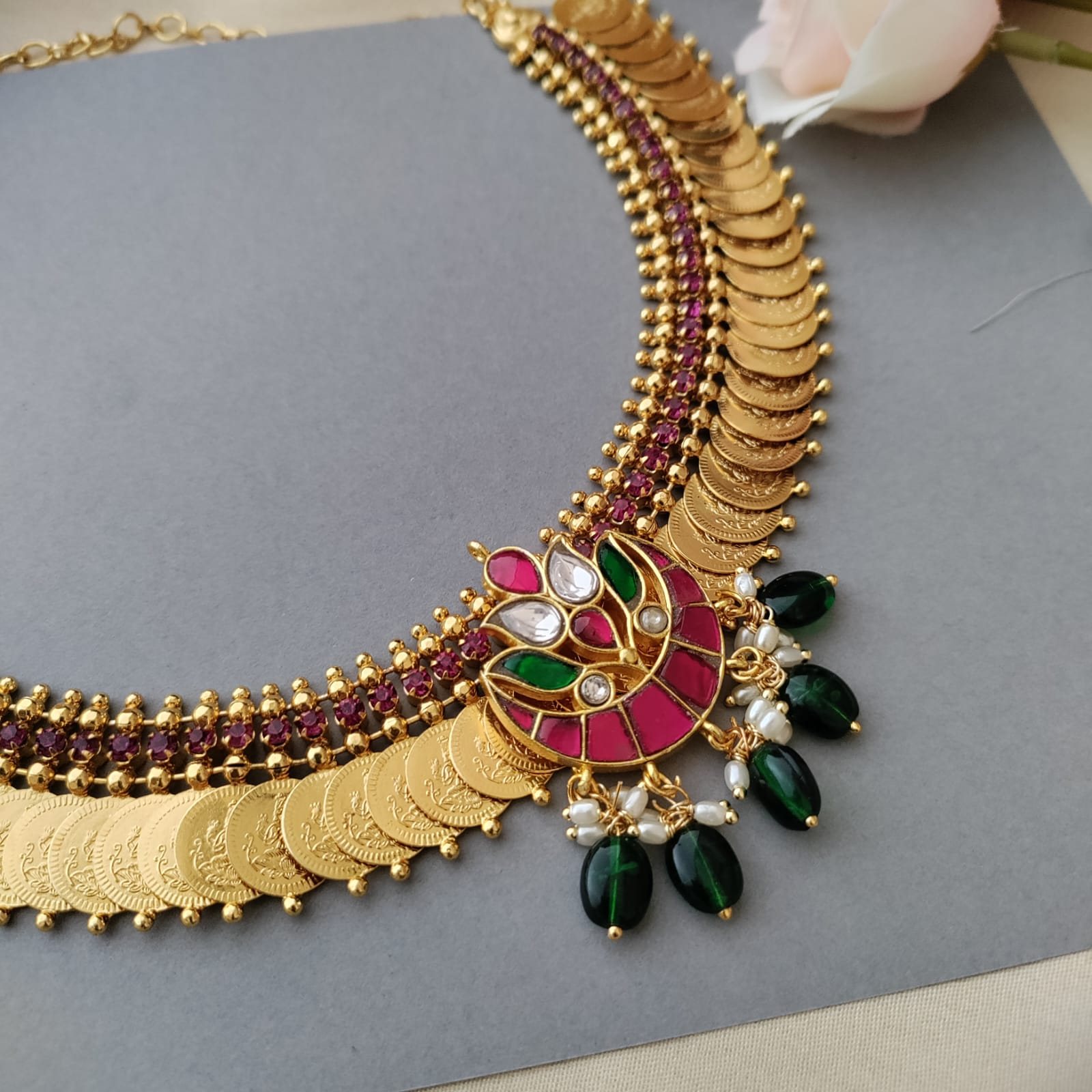 Coin jadau stone necklace set