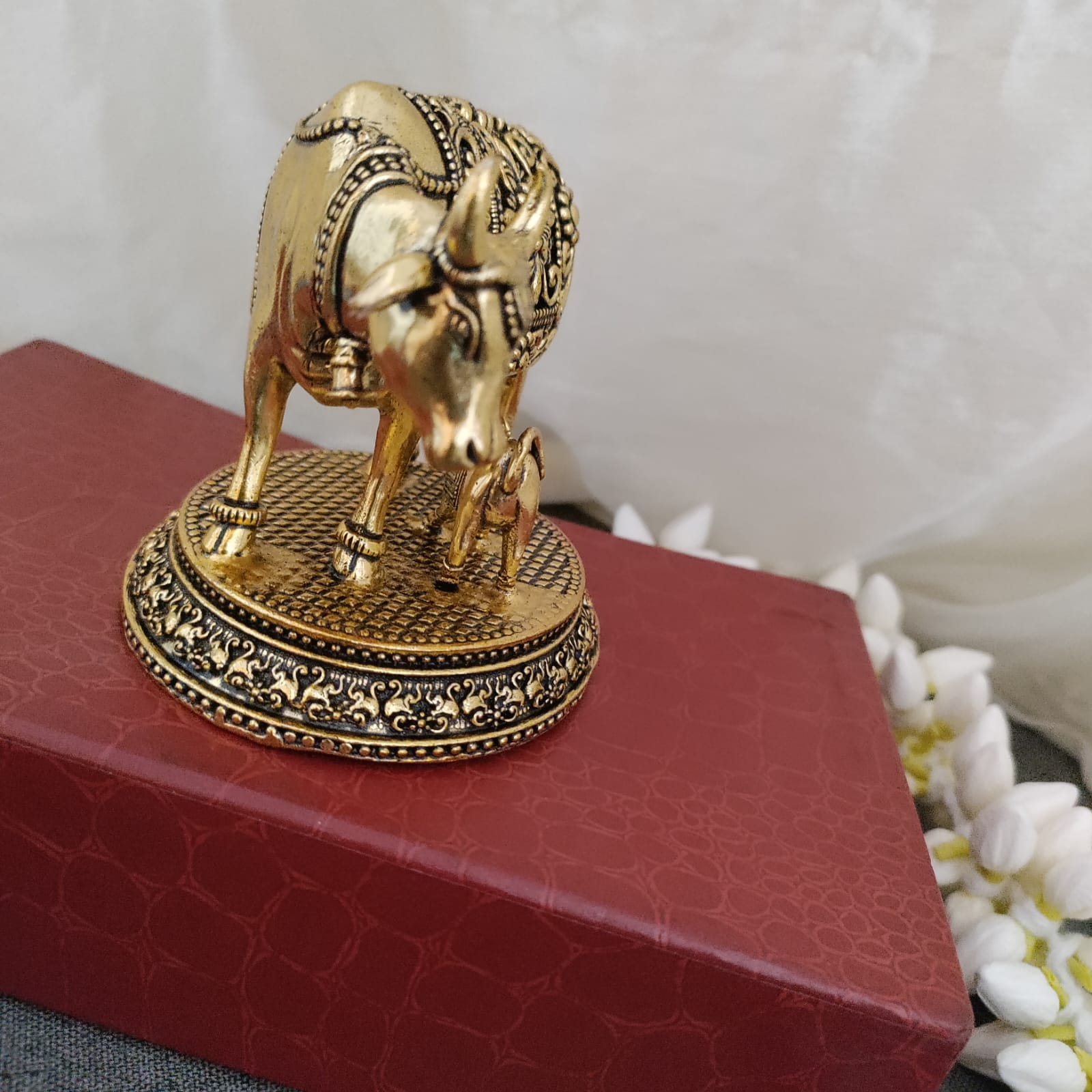 Keeping a Gomatha (cow and calf) idol at home, particularly the Kamadhenu form, is considered highly auspicious in Hindu tradition for fostering prosperity, abundance, and positive energy. It acts as a symbol of nurturing, care, and divine blessings, helping to remove negativity and resolve financial or personal challenges