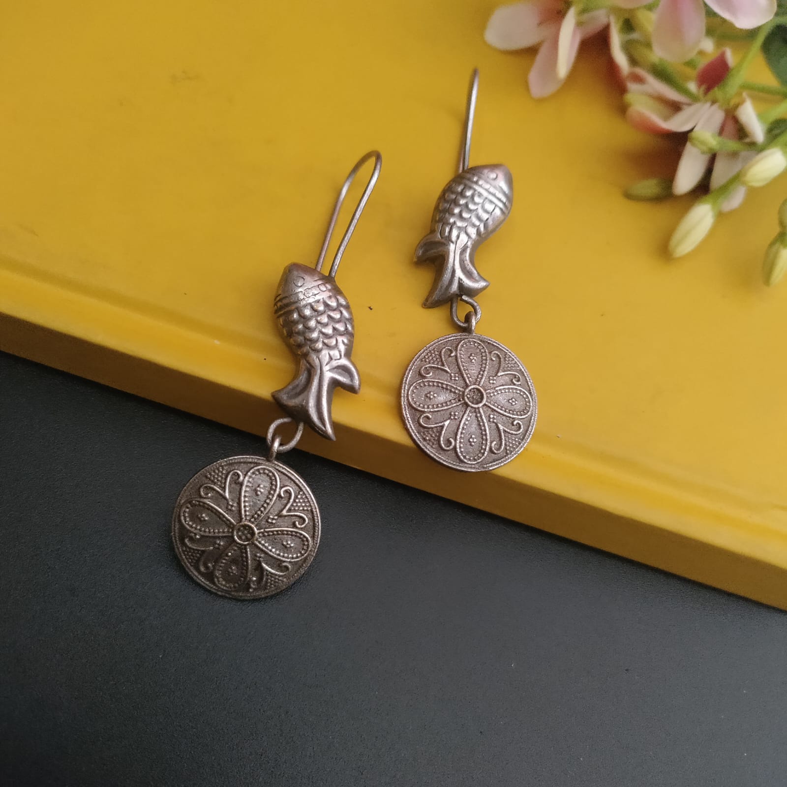 Fish round hook earring