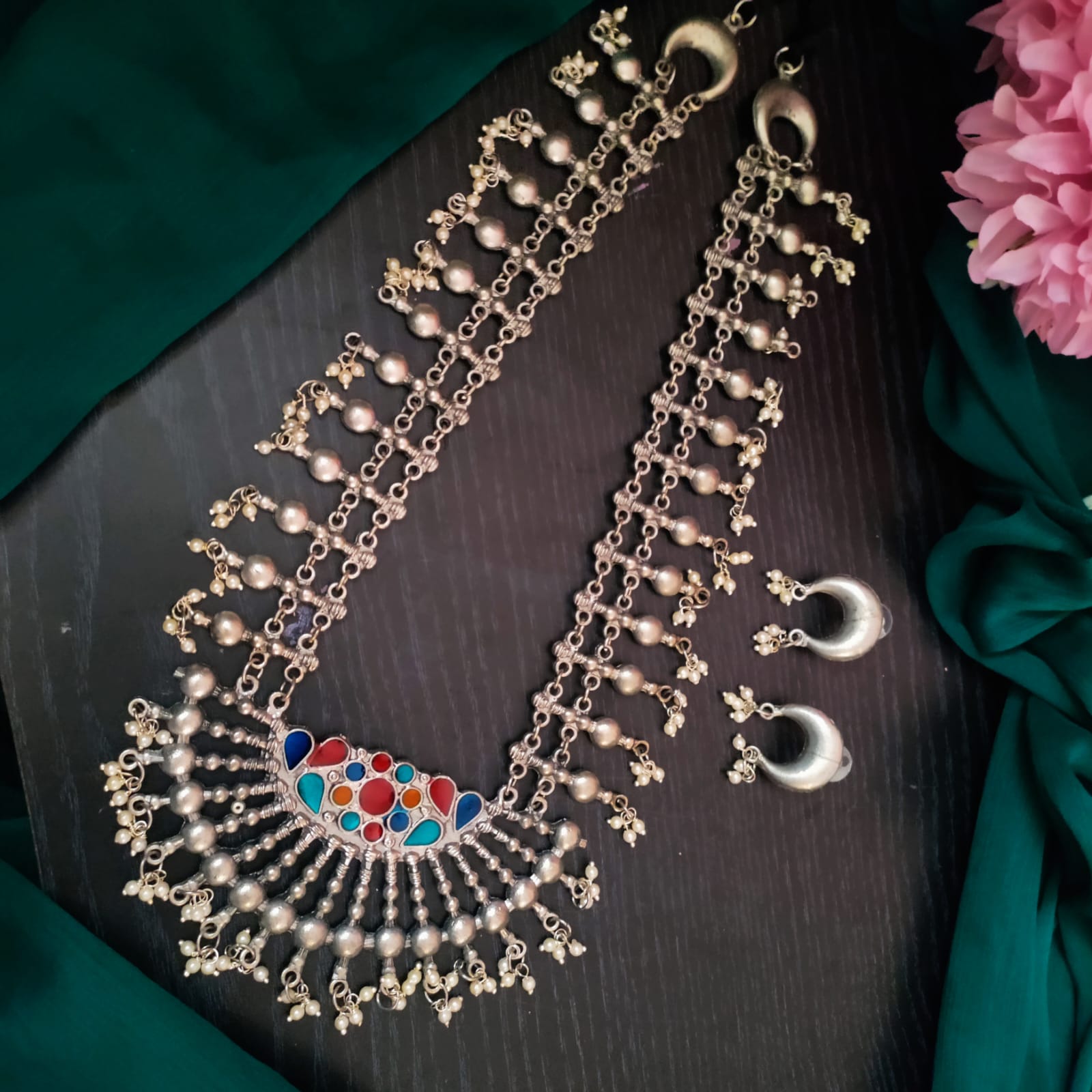 Long replica painted chain set silver