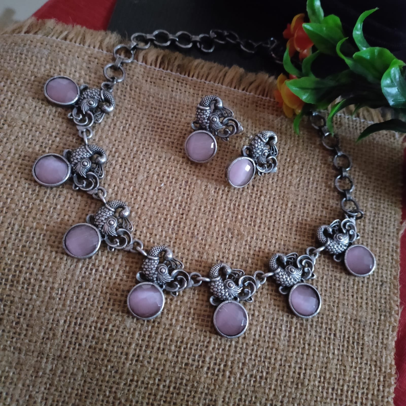 Pink peacock SLA necklace set