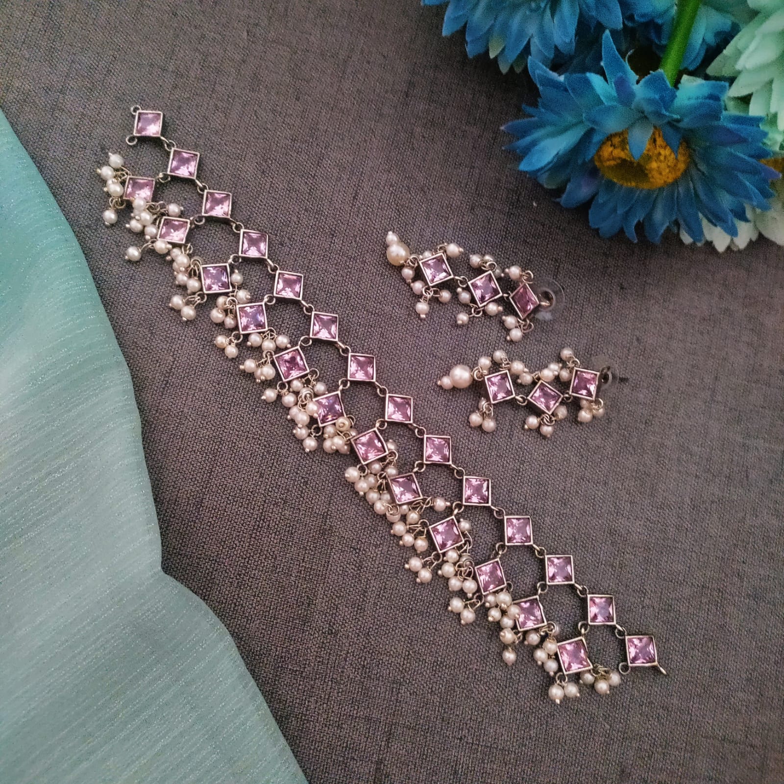 Pink 2 layer necklace set