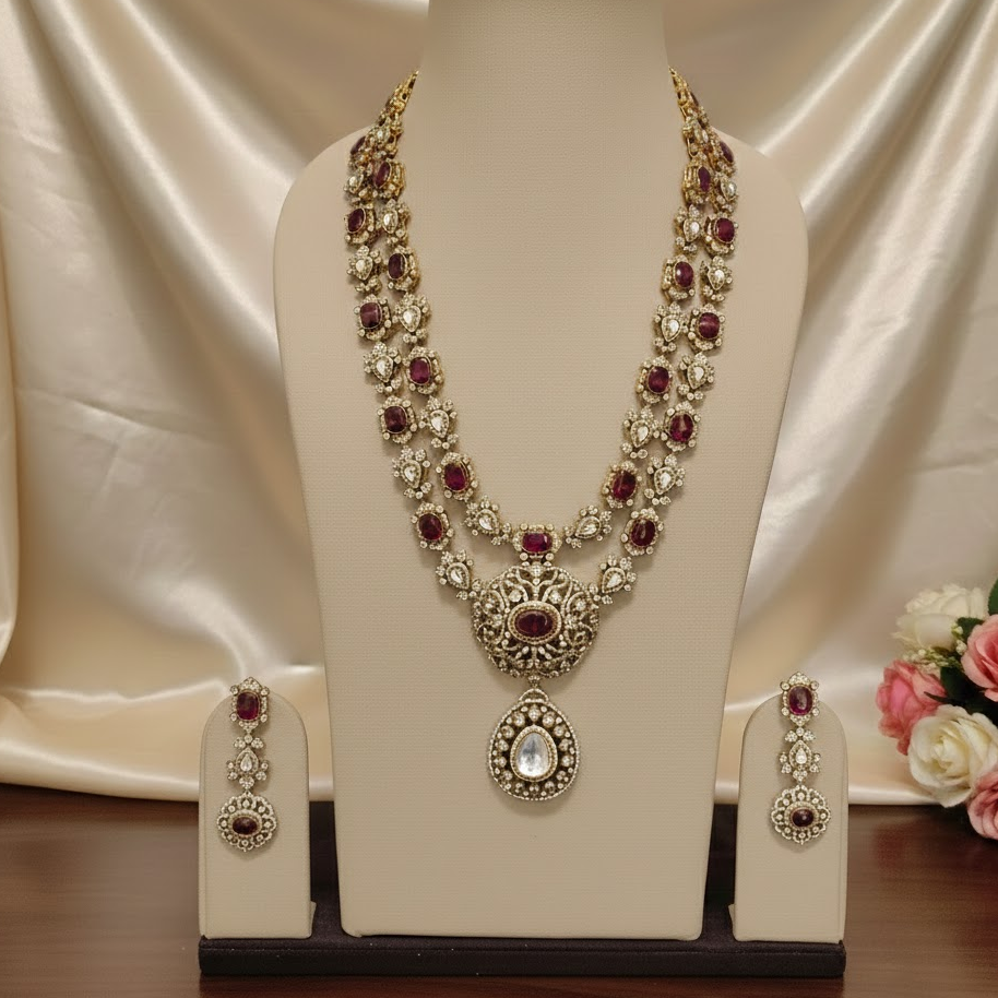 The Two Layer Victorian Long Necklace is a stunning piece that blends regal Victorian artistry with contemporary elegance.